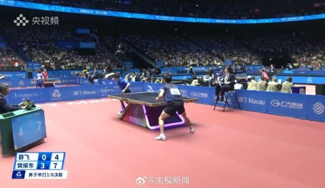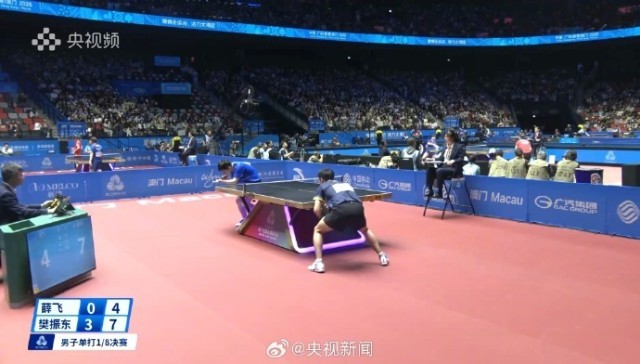在今天举行的全运会乒乓球男单1/8决赛中,樊振东战胜对手,晋级八强。