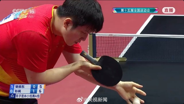 全运会乒乓球男团小组赛:樊振东反超赢了 3比1战胜对手