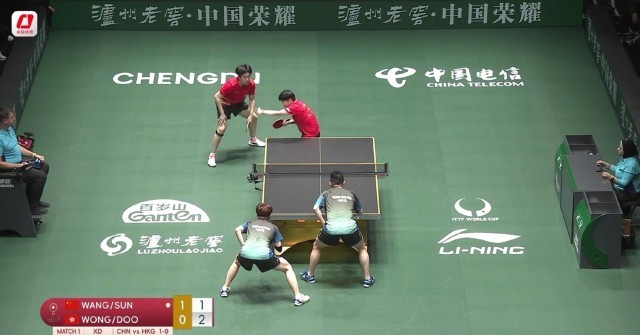 第一盘:王楚钦/孙颖莎3比0黄镇廷/杜凯琹;