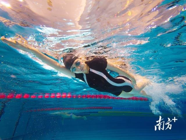 50 米、100 米、200 米…… 泳池边道上,只有呼吸声与心跳声相伴,动作生疏的她游得很慢,但每多完成100米,她的内心就多了一分坚定。