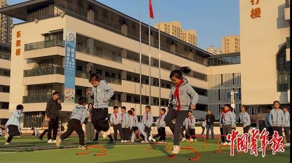 浙江省长兴县采用了这一“良方”。“我们自2021年就把体育放在了C位。”长兴县第七小学书记吴国强说,“体育运动不仅能有效防控近视,还能增强学生体质、提升心理健康,是推行‘健康第一’的教育理念最有效的抓手。”