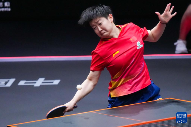 12月11日,孙颖莎在比赛中回球。