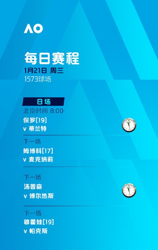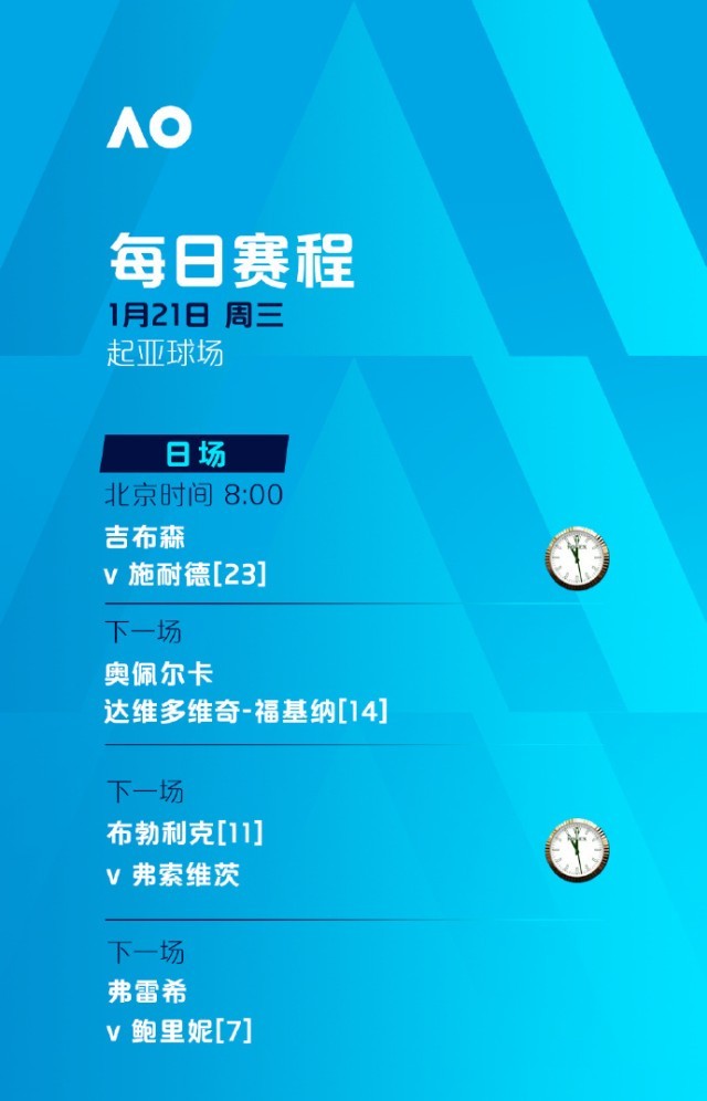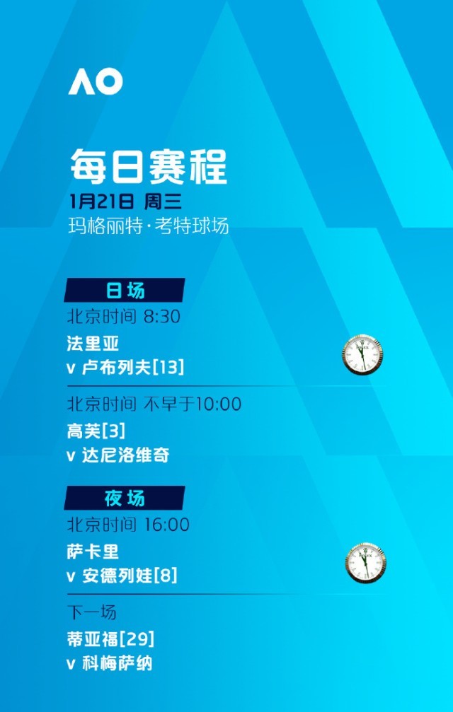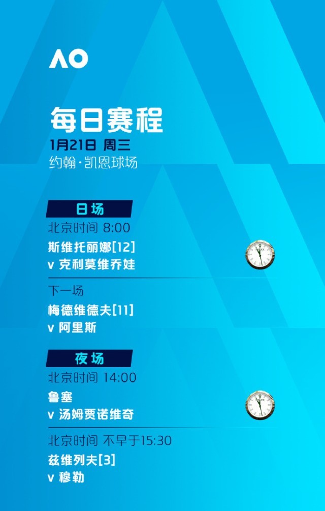 今天,2026年澳大利亚网球公开赛将迎来第四个比赛日。
