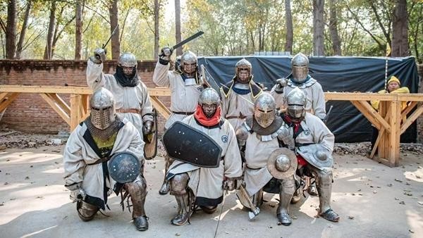 全甲格斗是一项融合历史文化复原与近身格斗对抗的运动。依照规则,选手须身穿与13到17世纪形制相符的盔甲,使用经过钝化处理、符合安全标准、还原古代形制的武器,在规则框架下进行单人或团队对抗,“模拟古代战场的情景”。00后管小奇外号“邮差”,2023年去俄罗斯参赛后感受到全甲格斗的发展潜力,便从一家机器人公司的项目管理职位上辞职,在北京和队友创立了“山河武社”,为感兴趣的队伍提供专业训练,也向大众开放兵击体验。