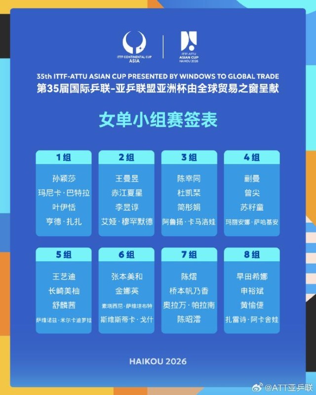 第35届国际乒联-亚乒联盟亚洲杯将于明日开赛, 男、女单小组赛签表出炉。
