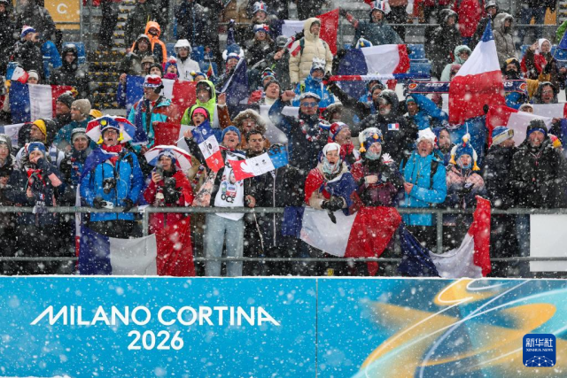 2月21日,法国观众在现场庆祝。