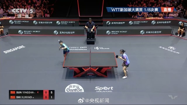 今天(27日),WTT新加坡大满贯女单1/8决赛,孙颖莎以3-1(11-2、7-11、11-7、11-6)战胜石洵瑶,晋级八强,实现2026年WTT新加坡大满贯3连胜。