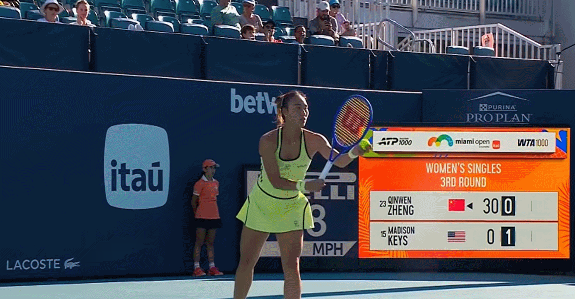 北京时间3月23日,WTA1000迈阿密赛第三轮,中国选手郑钦文在与前澳网冠军、美国选手凯斯的较量中,在4-6先丢一盘的情况下,以6-2、6-4连扳两盘,大比分2-1逆转凯斯,在本站连续淘汰两位大满贯冠军,职业生涯第三次闯入赛会16强。