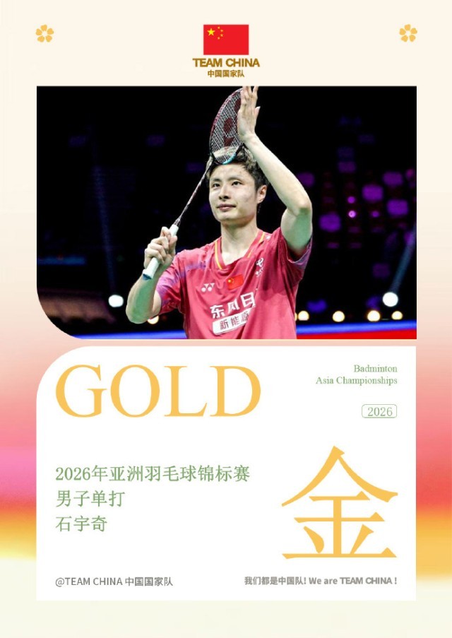 北京时间4月12日,2026亚洲羽毛球锦标赛男单决赛,中国选手石宇奇直落两局21-8、21-10轻取印度选手阿尤什,获得冠军。这也是石宇奇职业生涯首个亚锦赛男单冠军。
