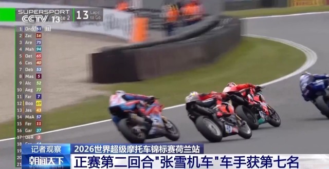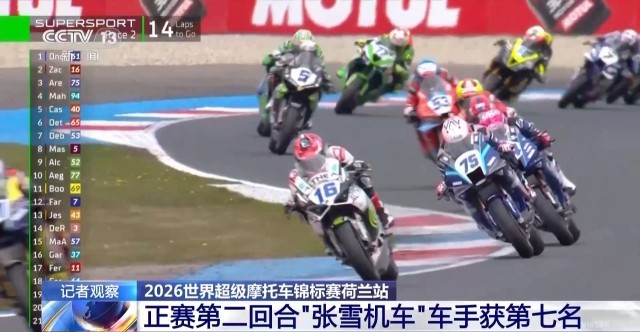 2026世界超级摩托车锦标赛荷兰站,北京时间昨晚8点,进行中量组第二场正赛争夺。最终,来自中国摩托车制造商“张雪机车”厂队车手德比斯获得第7名。目前,德比斯以72分暂居赛季车手积分榜第四位。