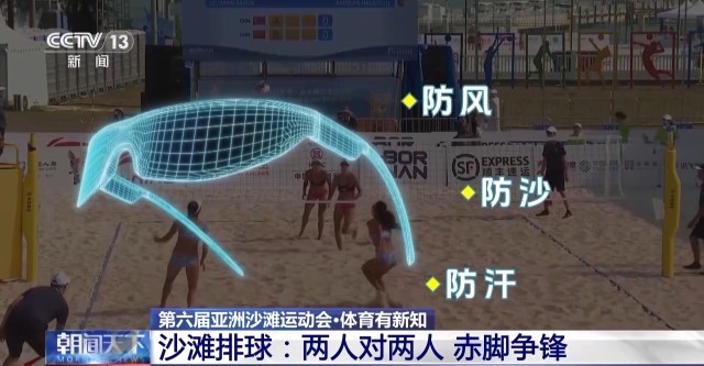 总台央视记者 杜思源:沙滩排球的比赛是在室外的沙地里进行的,运动员是光着脚走进场地,所以对沙子质量要求很高,不能混合有石子或贝壳等杂物,沙子的厚度达到40厘米以上,踩上去非常松软。