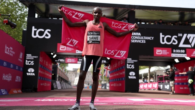 北京时间4月26日,2026伦敦马拉松鸣枪起跑。肯尼亚选手塞巴斯蒂安·萨维以1小时59分30秒的打破男子马拉松世界纪录,成为全程马拉松首位跑进2小时大关的人类运动员。