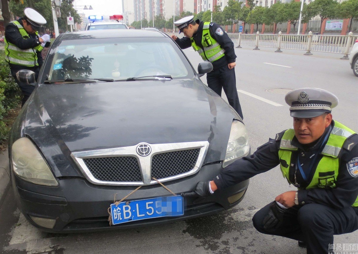 2017年3月23日,安徽芜湖,一辆轿车涉嫌违章停车被交警查处,民警在输入号牌查询该车相关信息时,发现该车近两年来,竟有28条违章记录没有处理,共需罚款3000元、记82分。图片来自视觉中国